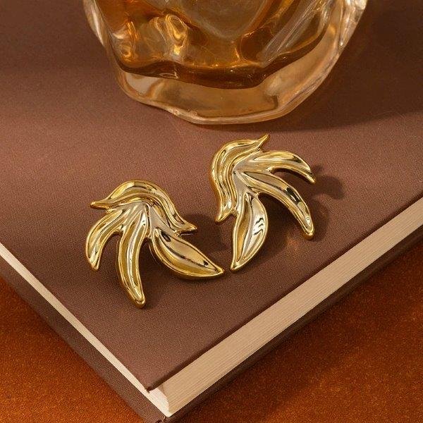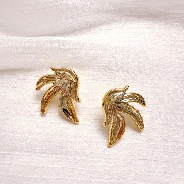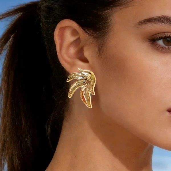 Evidențiază-ți stilul cu acești cercei aurii în formă de frunză, cu un design modern și sofisticat. Liniile fluide și finisajul lucios oferă un efect vizual elegant, perfect pentru femeile care iubesc accesoriile statement.