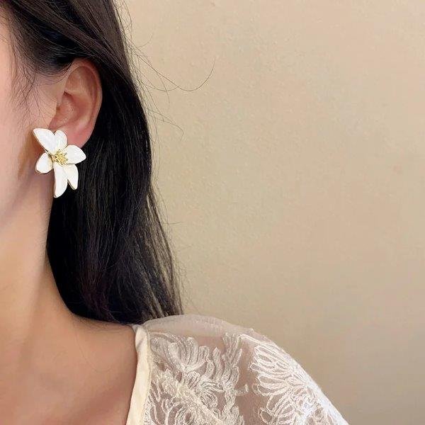 Adaugă un plus de feminitate și rafinament ținutelor tale cu acești cercei florali albi, creați într-un design elegant,