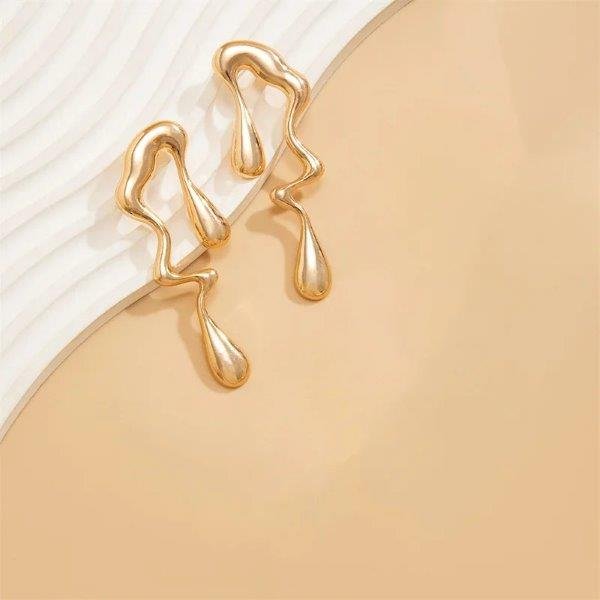 Adaugă o notă artistică ținutei tale cu acești cercei mari aurii cu design abstract. Forma fluidă și luciul metalic creează un efect spectaculos, perfect pentru femeile care iubesc stilul modern și expresiv.