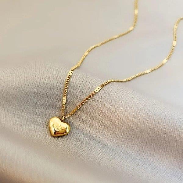 Alege un accesoriu delicat și plin de farmec cu acest colier auriu cu pandantiv în formă de inimă,
